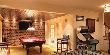 A new basement Game Room is always a big hit with friends and family. We can create the dream "game zone" that your currently missing in your home. Whether your game is Billiards, Pinball or Poker...we can design and build your new Game room Space!
